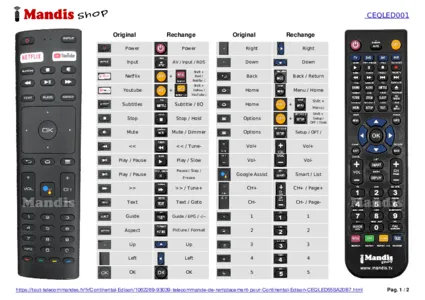 Un document est inclus pour vous aider à utiliser facilement la nouvelle télécommande, en indiquant la correspondance des boutons.