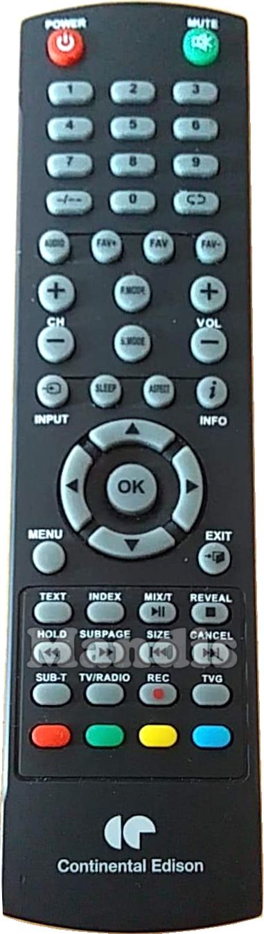 Télécommandes équivalentes qui remplacent la télécommande CONTINENTAL EDISON CELED500119B7 et possèdent exactement les mêmes fonctions :