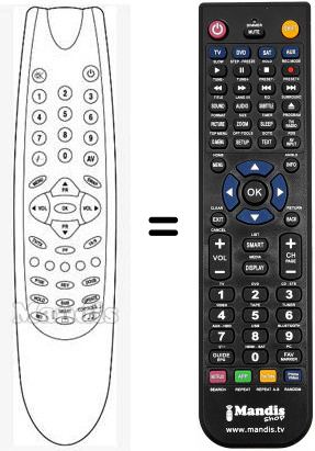 Télécommande qui remplace la télécommande d'origine 7TV187 car elle possède les mêmes fonctions.