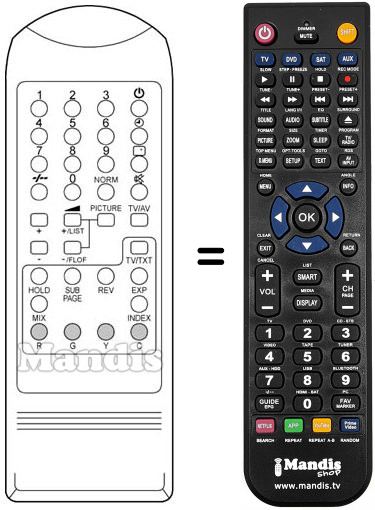 Télécommande qui remplace celle d'origine car elle possède les mêmes fonctions.
