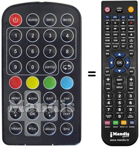 Télécommande qui remplace celle d'origine car elle possède les mêmes fonctions.