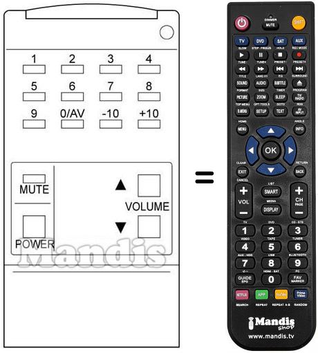 Télécommande qui remplace celle d'origine car elle possède les mêmes fonctions.