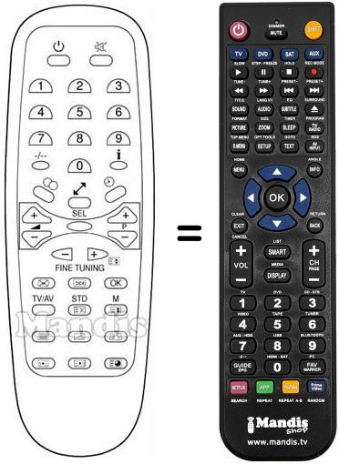 Télécommande qui remplace celle d'origine car elle possède les mêmes fonctions.