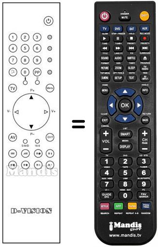 Télécommande qui remplace celle d'origine car elle possède les mêmes fonctions.