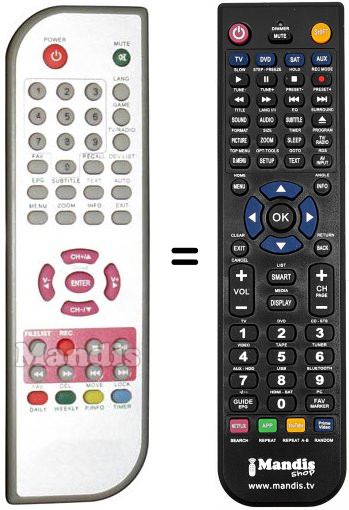 Télécommande qui remplace celle d'origine car elle possède les mêmes fonctions.