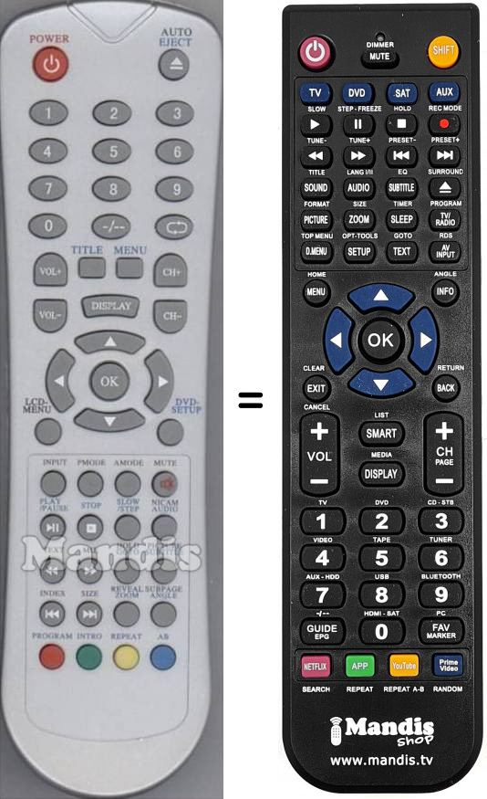 Télécommande qui remplace celle d'origine car elle possède les mêmes fonctions.
