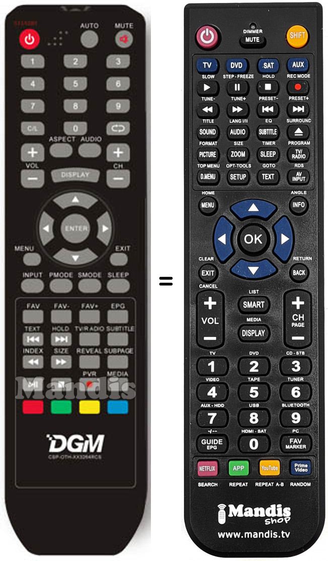 Télécommande qui remplace celle d'origine car elle possède les mêmes fonctions.