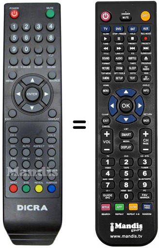 Télécommande qui remplace celle d'origine car elle possède les mêmes fonctions.