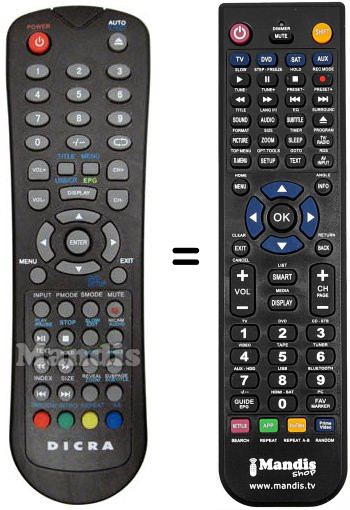 Télécommande qui remplace celle d'origine car elle possède les mêmes fonctions.