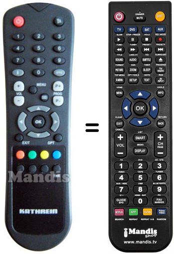 Télécommande qui remplace celle d'origine car elle possède les mêmes fonctions.