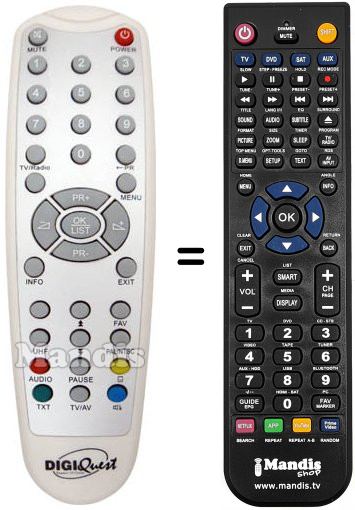 Télécommande qui remplace celle d'origine car elle possède les mêmes fonctions.