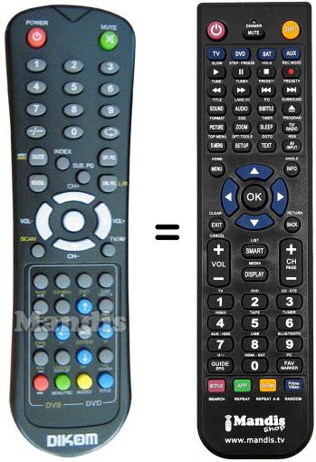 Télécommande qui remplace celle d'origine car elle possède les mêmes fonctions.