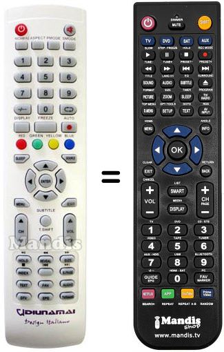 Télécommande qui remplace celle d'origine car elle possède les mêmes fonctions.