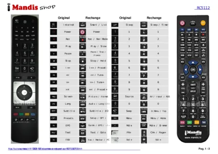 Un document est inclus pour vous aider à utiliser facilement la nouvelle télécommande, en indiquant la correspondance des boutons.