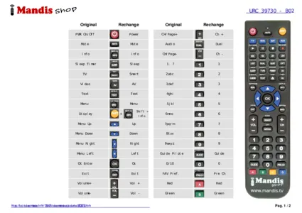 Un document est inclus pour vous aider à utiliser facilement la nouvelle télécommande, en indiquant la correspondance des boutons.