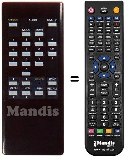 Télécommande qui remplace celle d'origine car elle possède les mêmes fonctions.