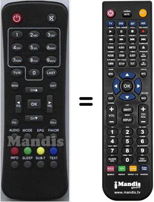 Télécommande qui remplace celle d'origine car elle possède les mêmes fonctions.