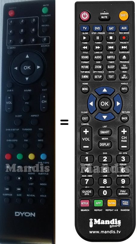 Télécommande qui remplace celle d'origine car elle possède les mêmes fonctions.