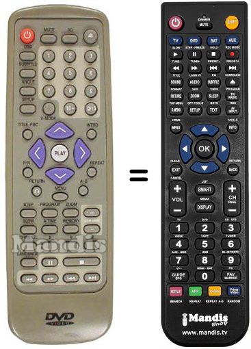 Télécommande qui remplace celle d'origine car elle possède les mêmes fonctions.