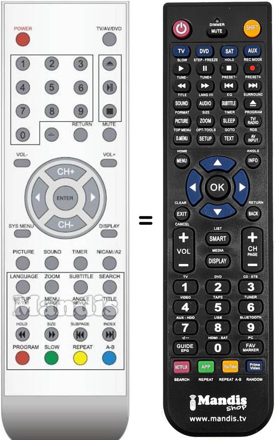 Télécommande qui remplace celle d'origine car elle possède les mêmes fonctions.