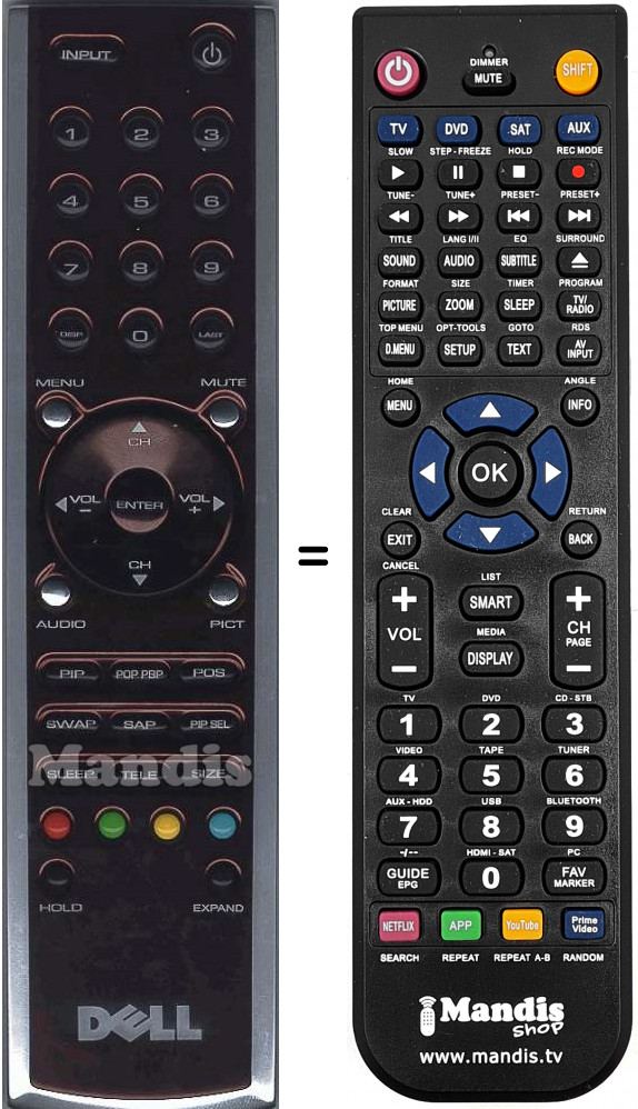 Télécommande qui remplace celle d'origine car elle possède les mêmes fonctions.