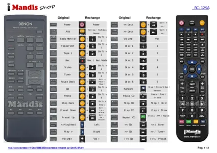Cette télécommande remplace entièrement votre RC 129A et offre toutes les fonctions de l'originale.