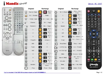 Cette télécommande remplace la plupart des fonctions de votre RC-1007 (00D3990999008). Il ne s'agit pas d'une télécommande universelle, mais d'une copie avec la plupart des touches et des fonctions de votre télécommande d'origine.