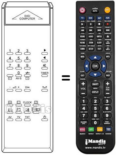Télécommande qui remplace celle d'origine car elle possède les mêmes fonctions.