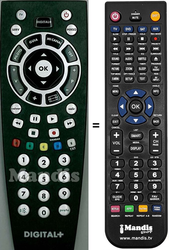 Télécommande qui remplace celle d'origine car elle possède les mêmes fonctions.