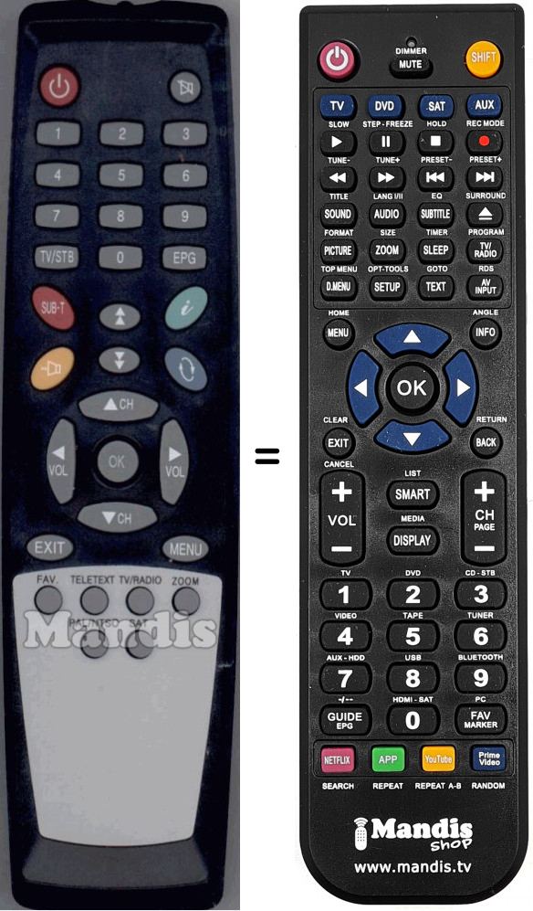 Télécommande qui remplace la télécommande d'origine CCI-5110E car elle possède les mêmes fonctions.