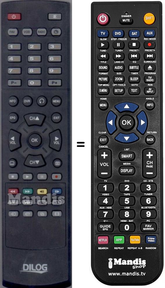 Télécommande qui remplace celle d'origine car elle possède les mêmes fonctions.