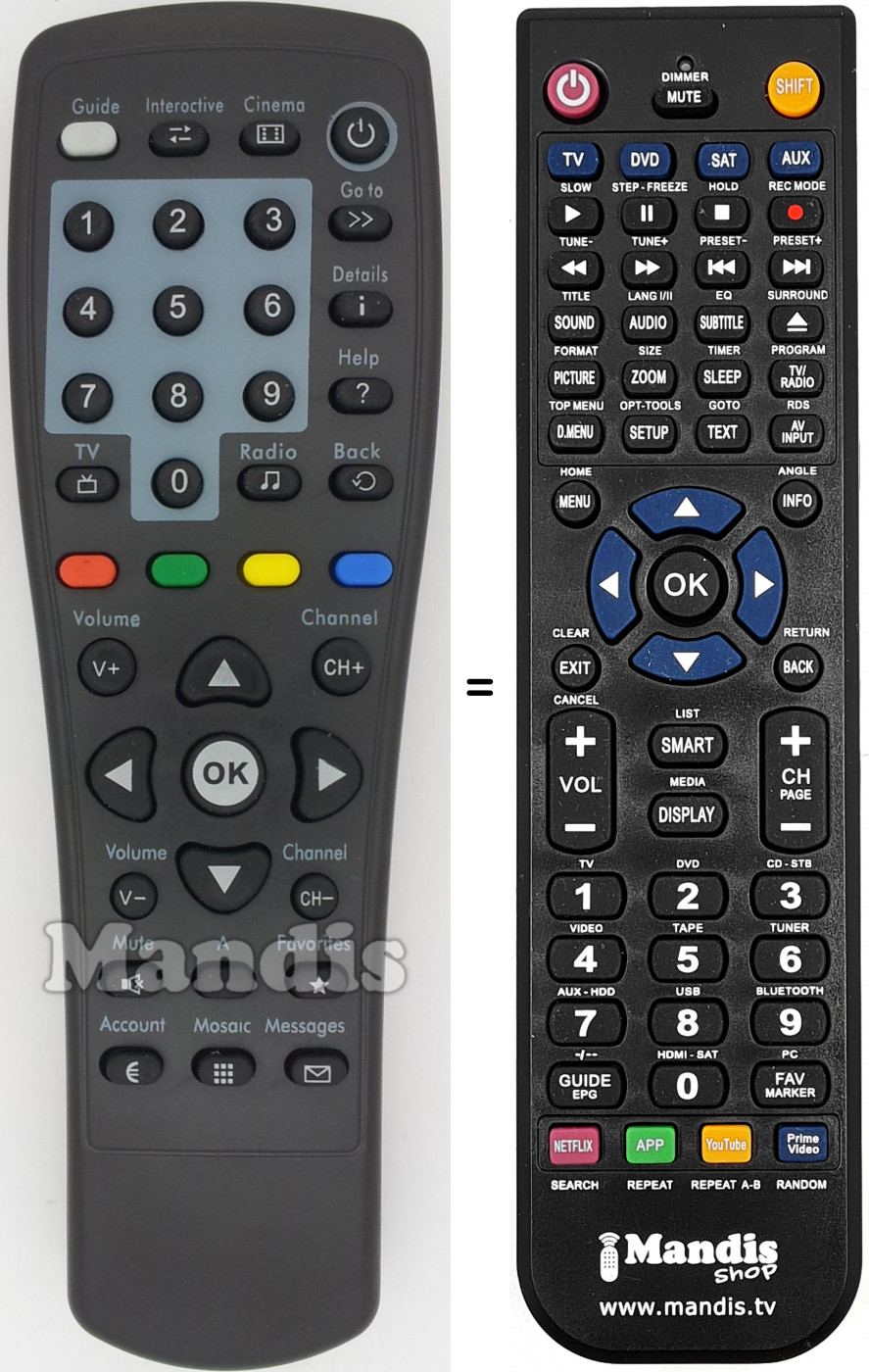 Télécommande qui remplace celle d'origine car elle possède les mêmes fonctions. Il ne s'agit pas d'une télécommande universelle mais d'une télécommande qui remplace celle d'origine. Vous recevrez la télécommande prête à fonctionner, vous n'aurez qu'à mettre les piles. Il n'est pas nécessaire de la programmer. Nous vous garantissons que la télécommande aura exactement les mêmes fonctions que celle d'origine.