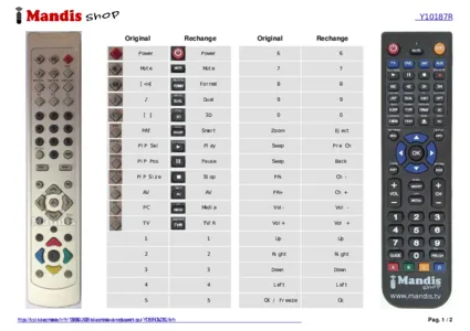 Un document est inclus pour vous aider à utiliser facilement la nouvelle télécommande, en indiquant la correspondance des boutons.