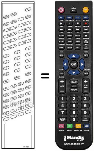 Télécommande qui remplace celle d'origine car elle possède les mêmes fonctions.