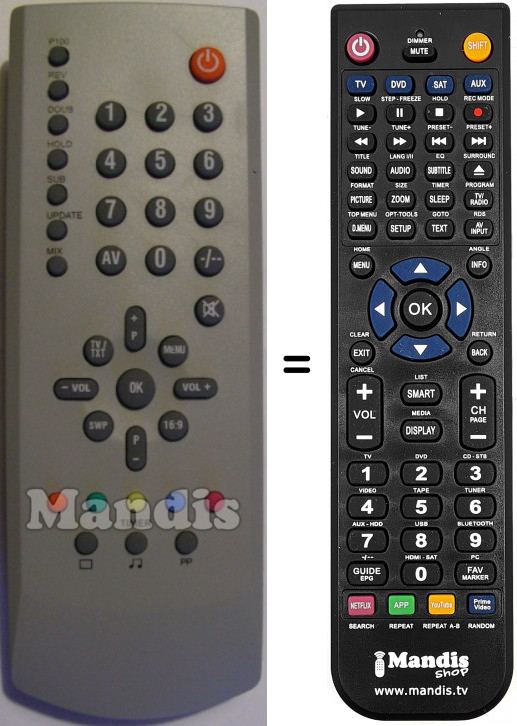 Télécommande qui remplace celle d'origine car elle possède les mêmes fonctions.