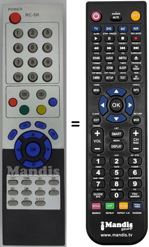 Télécommande qui remplace celle d'origine car elle possède les mêmes fonctions.