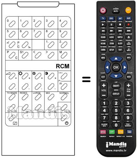 Télécommande qui remplace celle d'origine car elle possède les mêmes fonctions.