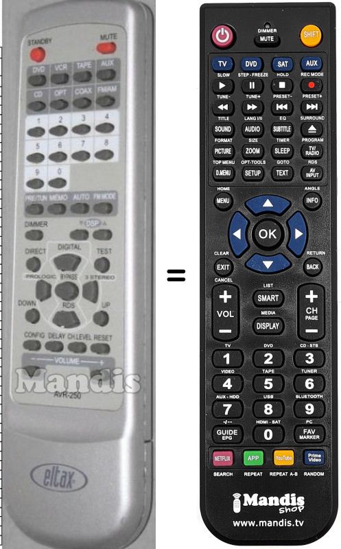 Télécommande qui remplace celle d'origine car elle possède les mêmes fonctions.