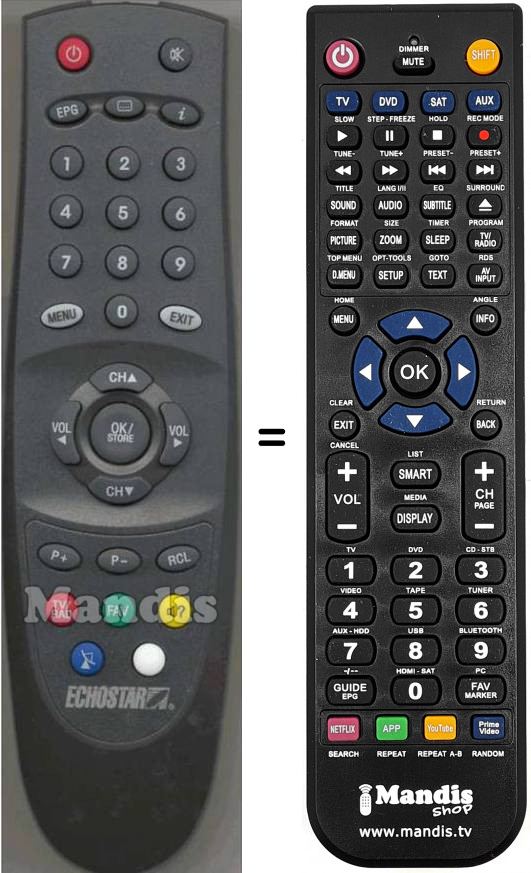 Télécommande qui remplace celle d'origine car elle possède les mêmes fonctions.