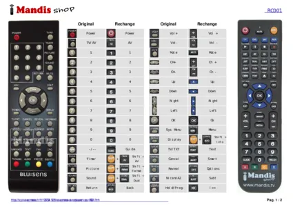 Un document est inclus pour vous aider à utiliser facilement la nouvelle télécommande, en indiquant la correspondance des boutons.