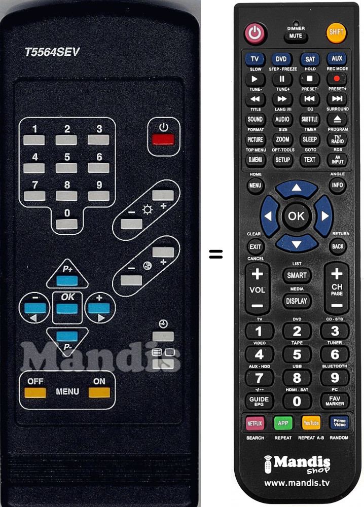 Télécommande qui remplace celle d'origine car elle possède les mêmes fonctions.