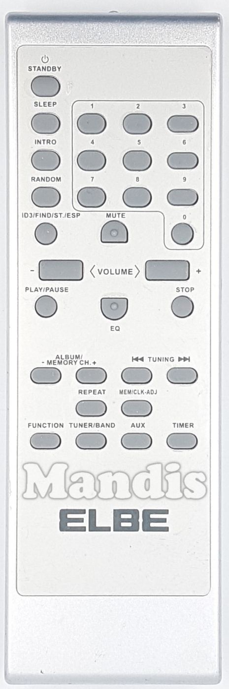 Télécommande d'origine ELB001 pour chaîne hi-fi de la marque Elbe. Il s'agit d'un modèle de télécommande d'origine.