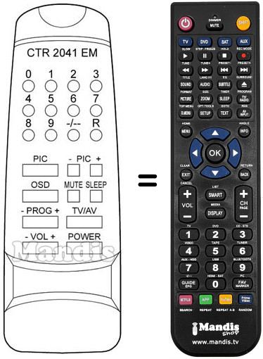 Télécommande qui remplace celle d'origine car elle possède les mêmes fonctions.