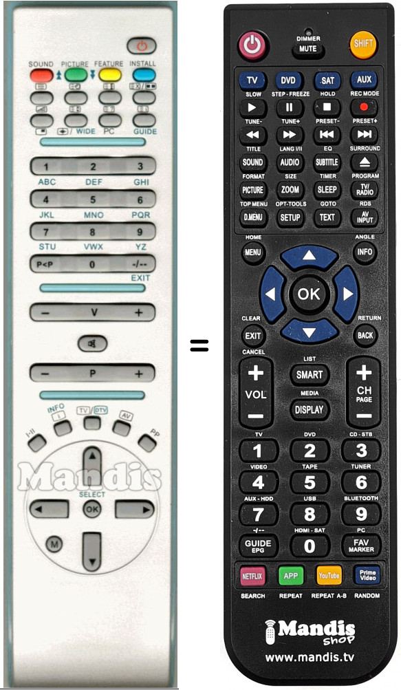 Il ne s'agit pas d'une télécommande universelle mais d'une télécommande qui remplace celle d'origine.