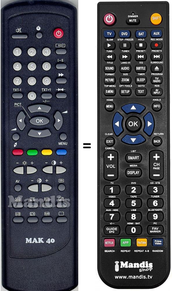 Télécommande qui remplace la télécommande d'origine MAK40 car elle possède les mêmes fonctions.