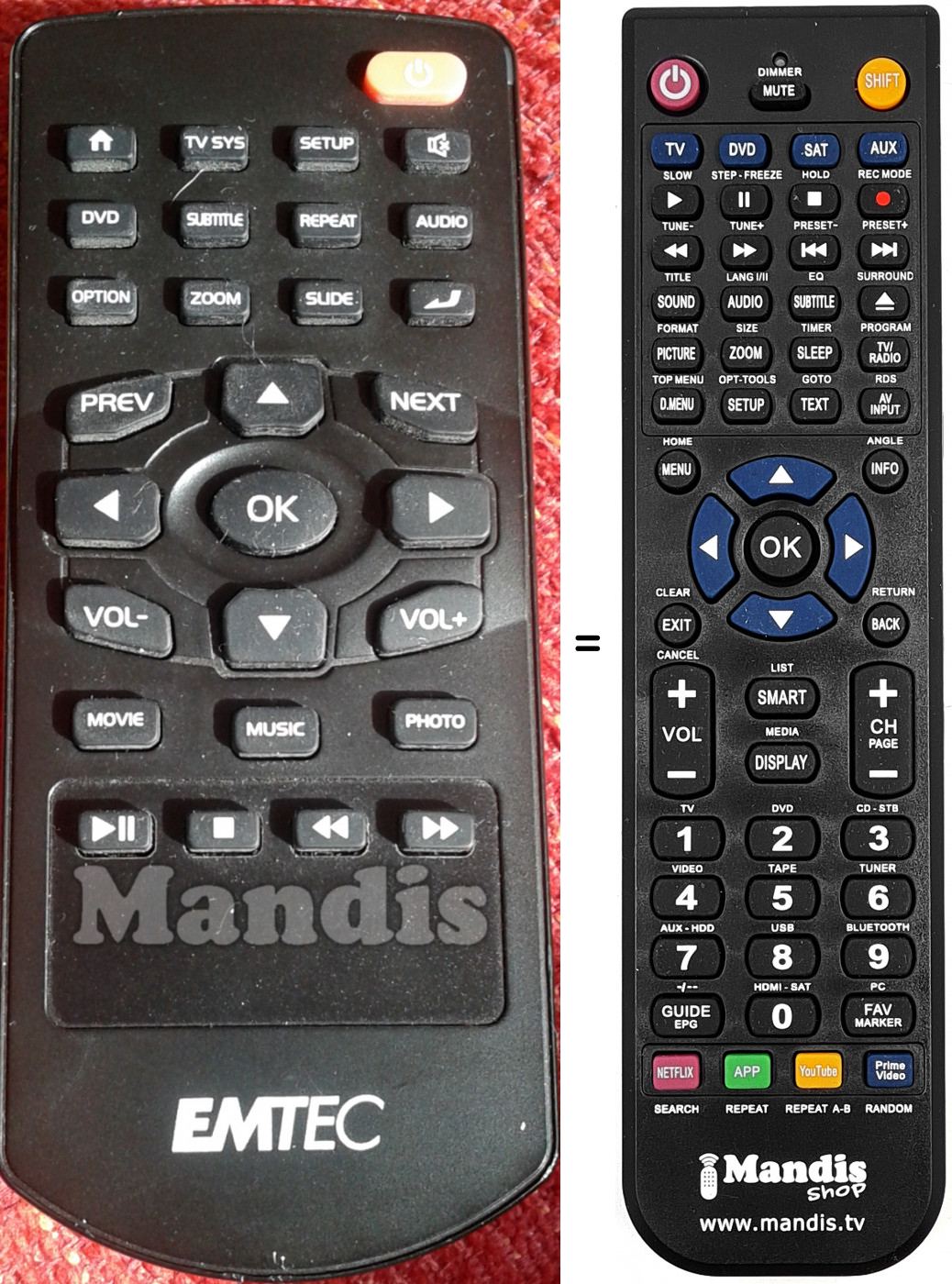 Télécommande qui remplace la télécommande d'origine Movie Cube (K220) car elle possède les mêmes fonctions.