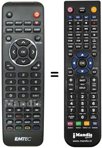 Télécommande qui remplace celle d'origine car elle possède les mêmes fonctions.