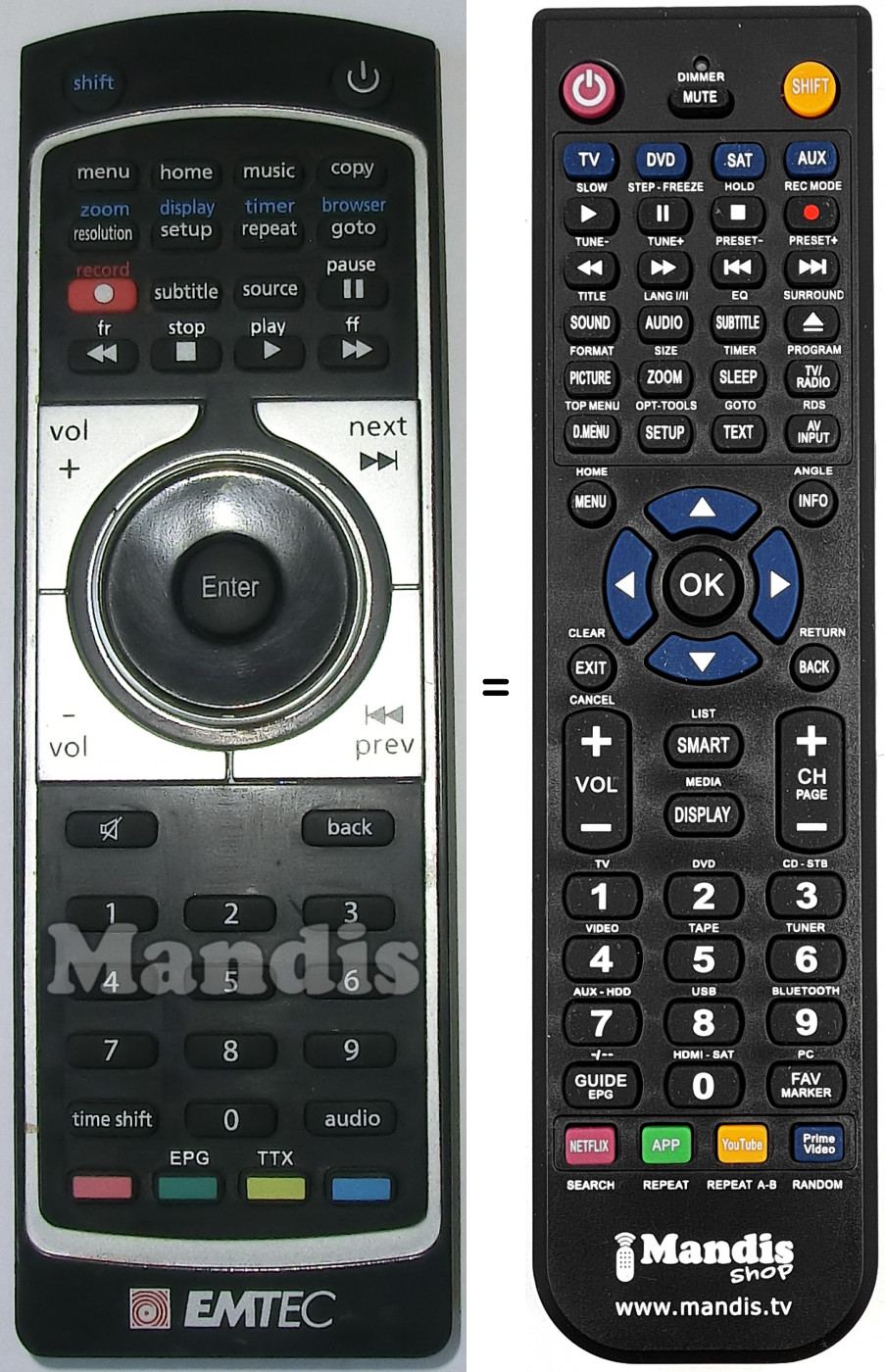 Télécommande qui remplace celle d'origine car elle possède les mêmes fonctions.