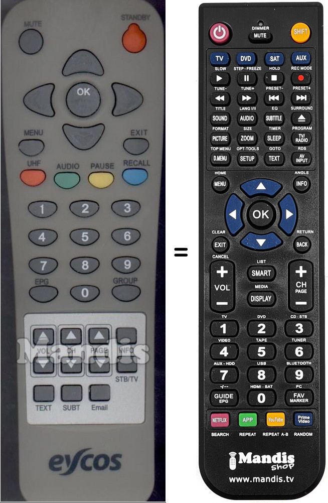 Télécommande qui remplace celle d'origine car elle possède les mêmes fonctions.