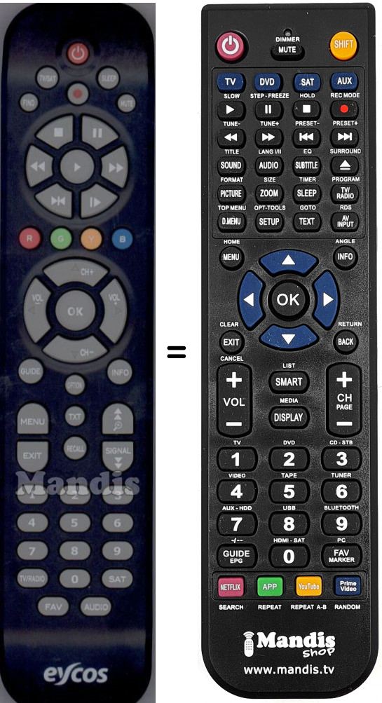 Télécommande qui remplace celle d'origine car elle possède les mêmes fonctions.